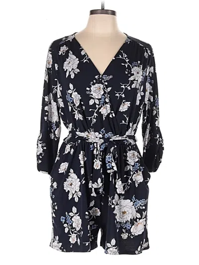 Maurices Romper, Size: Large. Item Details: Blue, Floral Pattern, V-Neck, 3/4 Sleeve, Women's Dresses, Polyester/Spandex