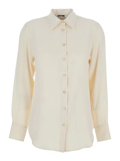 MAURO GRIFONI White Shirt With Classic Collar And Buttoned Cuffs In Cotton Blend Woman