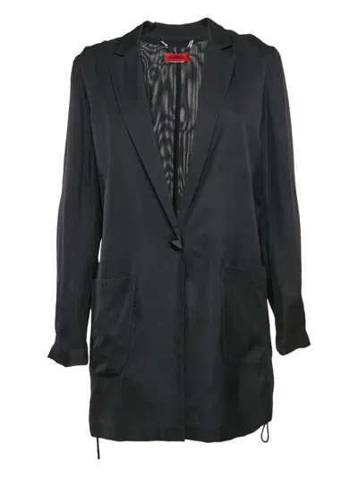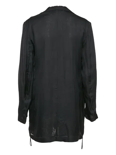 navy crepe fabric buttoned closure two patch pockets drawstring detail hem Condition: GOOD. This previously owned and used item is in good condition with minimal signs of use. This may include fading of material or plating and scratches.