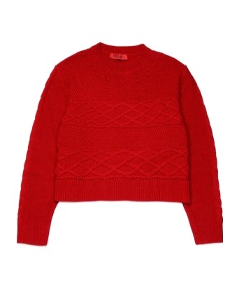 MAX & Co - Wool-blend pullover - Girl - Red. Long-sleeved crew-neck wool-blend pullover. Embellished with a mix of weaves: braids, diamonds, polka dots, ribs and reverse plain knit. Contrasting heart embroidered on the back. A garment with a refined style, suitable for informal occasions.