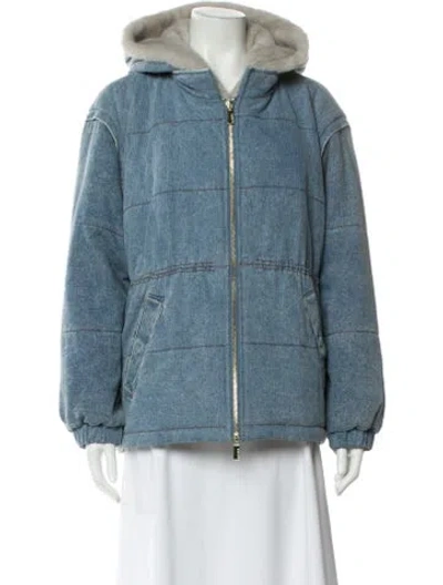 Max & Moi Denim Jacket Blue With Hood Faux Fur Trim & Stand Collar Slit Pockets & Zip Closure Fit: Jackets by Max & Moi typically fit true to size. | Max & Moi Denim Jacket in Blue, Women's US4, FR36 | S