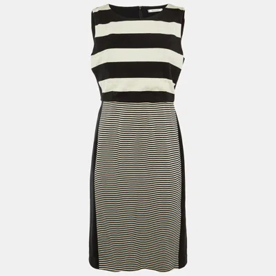 Pre-owned Black /white Striped Cotton Knit Midi Dress M