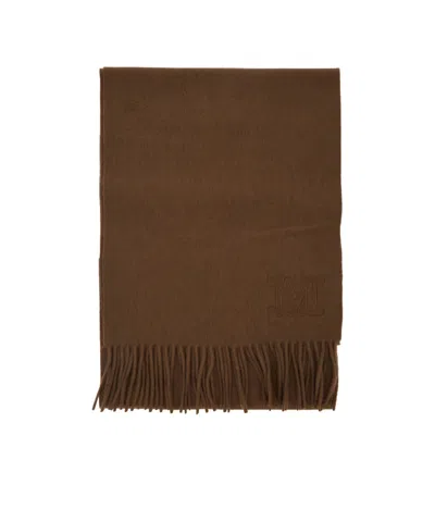 MAX MARA Brown Logo Embroidery Rectangular Scarf