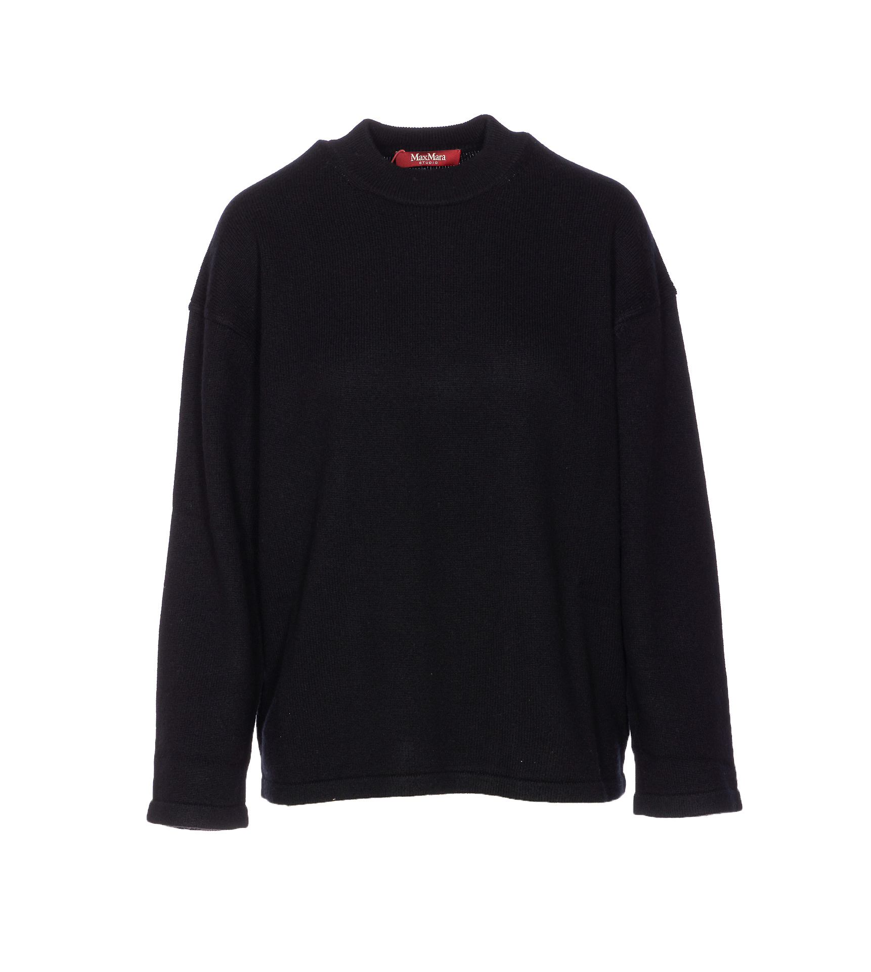 Ribbed crewneck; long sleeves, dropped shoulders Ribbed cuffs and hem Plain stitch knit Black color 80% Wool, 20% Cashmere