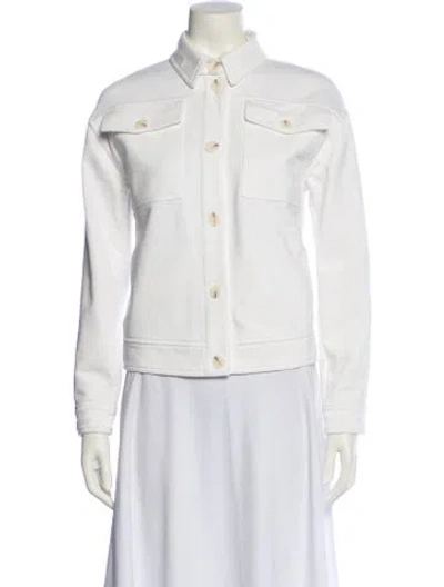 Max Mara Leisure Denim Jacket White Pointed Collar Button Closure Size not listed, estimated from measurements. Fit: Jackets by Max Mara Leisure typically fit true to size. | Max Mara Leisure Denim Jacket in White, Women's S