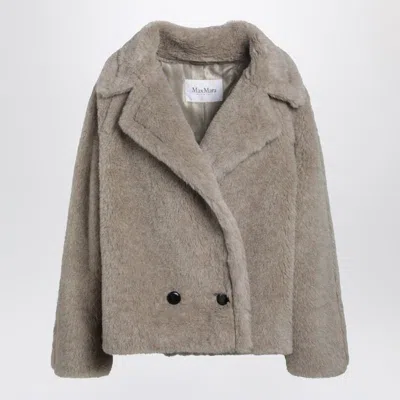 Short double-breasted coat by Max Mara in Teddy fabric made of alpaca and cashmere on a silk base in sand beige, featuring an oversized silhouette, wide notch lapels, long raglan sleeves, button fastening, side pockets and Monogram jacquard lining.