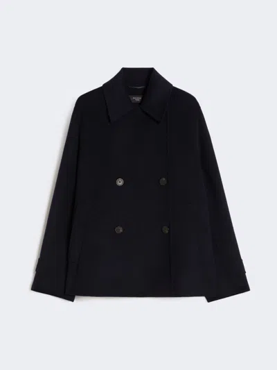 Short, double-breasted pea coat. Pea coat made from hand-sewn, wool-blend double fabric Slightly flared fit with a central rear slit Dual-use lapel collar Set-in sleeves with cuff tab detail Button fastening Welt side pockets Half-lined model