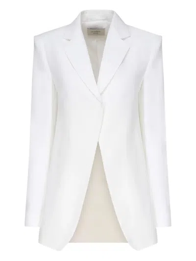 -Made with double pure cotton fabric combined with viscose jersey -Hidden buttoning -Back slit -The size shown in the photo is 40 IT -Color: White
