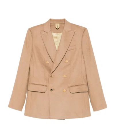 Max Mara presents an elegant beige camel blazer that combines classic tailoring with modern sophistication. Peak lapels and contrasting stitching details add distinctive character, while the double-breasted closure ensures a refined silhouette. Functional elements include front flap pockets, a welt chest pocket, and button cuffs. A double back split hem enhances mobility, making it a versatile addition to any wardrobe. Color - Beige Material - Camel blend Closure - Double-breasted Pockets - Front flap and welt chest pocket Cuffs - Button cuffs Hem - Double back split Care - Dry clean only