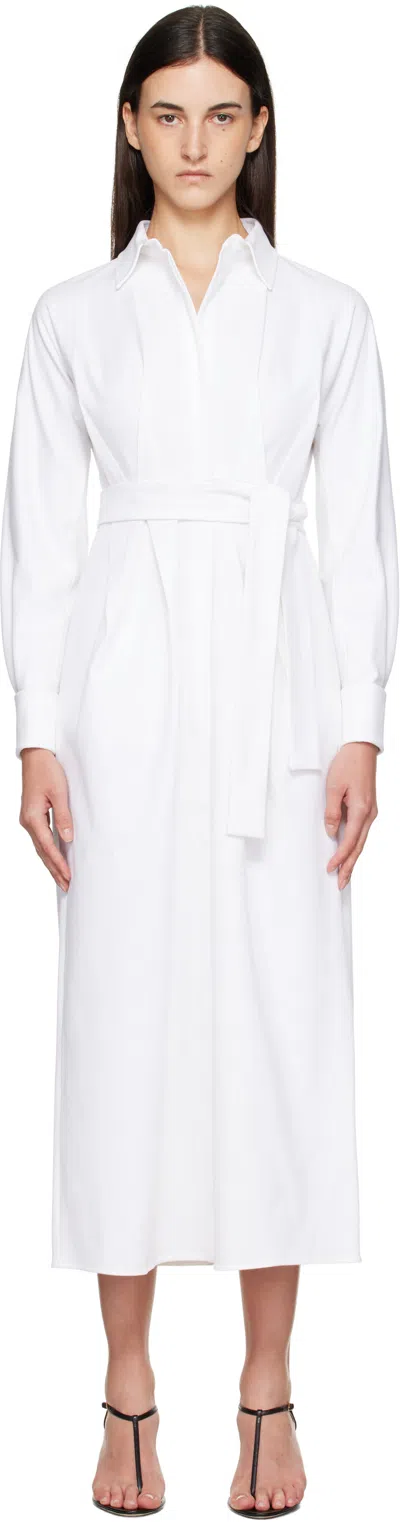 MAX MARA Waist Belted French Cuffs Long Sleeve Midi Dress In White