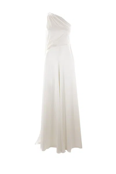 Max Mara's one shoulder dress crafted in white silk satin. It features asymmetric neckline, side hook-and-eye / concealed zip closure, long sash on the left shoulder, back slight train and crêpe de chine lining.. Gender: Women. Material: 100% SILK. Color: WHITE. Made in: IT. Product ID: 242122606660010214016. *Import tax/duty will be calculated at checkout (If applicable)