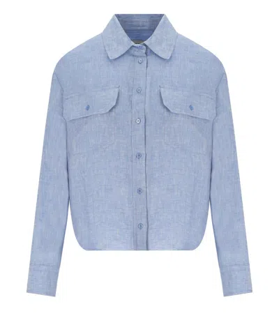Eureka shirt by Max Mara Weekend made in linen poplin in shades of blue. Pockets with flap on the front, closure with mother-of-pearl buttons and embroidered logo on the bottom, left side. Soft fit. Composition: 100% linen - embroidery excluded.
