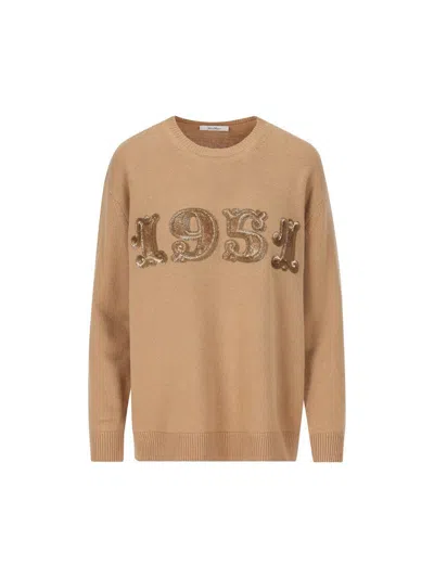 - Material: 70% wool, 30% cashmere - Color: brown - Other details: On-tone sequin embroidery making up 1951 pattern on front; Ribbed finished edges; Dropped shoulders; Crew neck - Item code: 2421366222600025