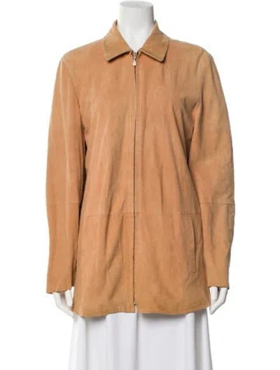 Max Mara Leather Jacket Neutrals Pointed Collar Slit Pockets & Zip Closure Fit: Jackets by Max Mara typically fit true to size. | Max Mara Leather Jacket in Neutrals, Women's US 12 | XL