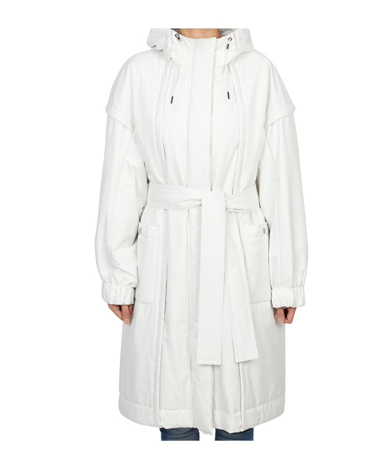 Long sleeves, hooded with drawstring, and front zip closure.