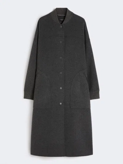 Long coat featuring a bomber-style collar and rib-knit cuffs. Coat in hand-sewn double-faced wool-blend fabric Loose fit Drop-shoulder long sleeves Front fastening with snap buttons Wide double-welt pockets at the sides Darted yoke on the front and back Unlined model