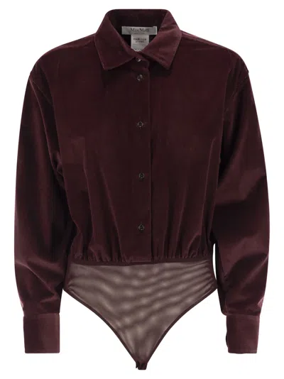 Maxmara Fertile Velvet Shirt Bodysuit In Burgundy