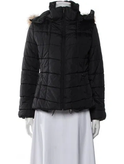 Max Mara Nylon Jacket Black With Hood Fur Trim & Stand Collar Slit Pockets & Zip Closure Fit: Jackets by Max Mara typically fit true to size. | Max Mara Nylon Jacket in Black, Women's US 8 | M