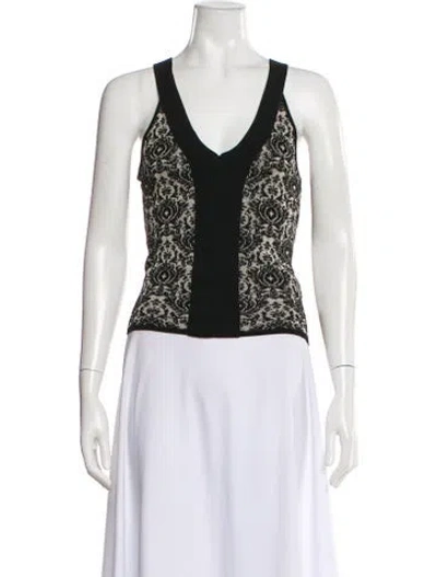 Max Mara Tank Top Black Patterned V-Neck Fit: Tops by Max Mara typically fit small, consider taking a size up. | Max Mara Patterned V-Neck Top in Black, Women's M