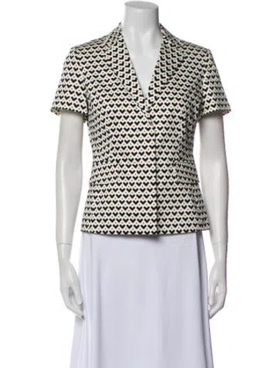 Max Mara Evening Jacket White Printed Pointed Collar Flap Pockets & Button Closure Fit: Jackets by Max Mara typically fit true to size. | Max Mara Printed Evening Jacket in White, Women's US 4 | S