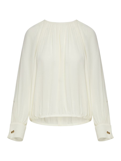 MAX MARA Gathered Neckline Long Sleeves Top In Beige