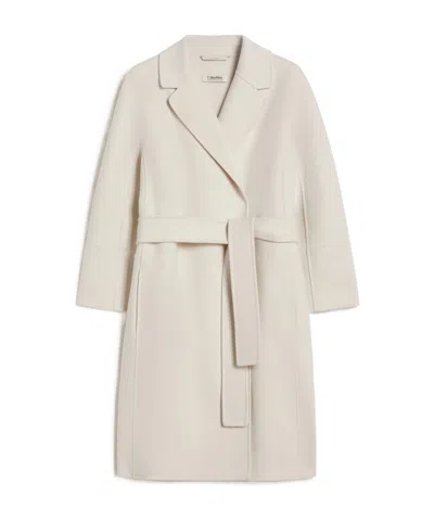 Cocoon-fit short coat featuring a darted rear waist. Coat in hand-sewn double-faced pure wool broadcloth The comfort fit tapers slightly at the hem Small lapel collar Kimono sleeves on the front and raglan sleeves at the back Matching belt In-seam side pockets Unlined model