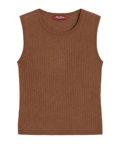 Sleeveless top, featuring a flat-rib knit that highlights the silhouette. Silk and wool yarn top Figure-hugging Crew neck and wide shoulder Ribbed edges