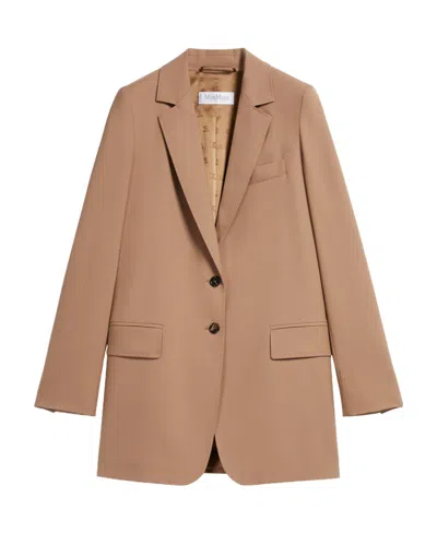 Straight cut long suit jacket, made of light elastic wool, with lapel, chest pocket and flip bag, inner lining, two-button closure.