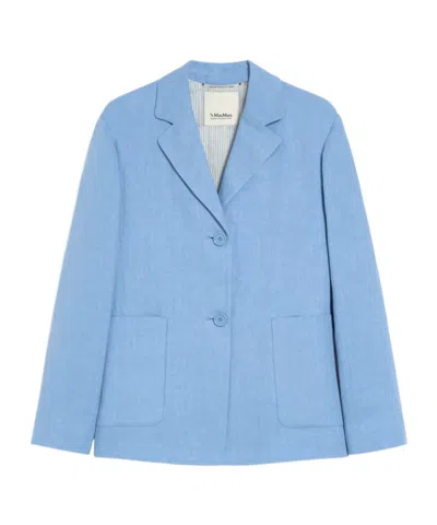 MAX MARA Single-breasted Linen Jacket In Light Blue