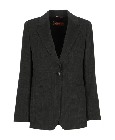 Pointed lapel, long sleeves, two front side pockets, front button opening and closing, hem rear slit.