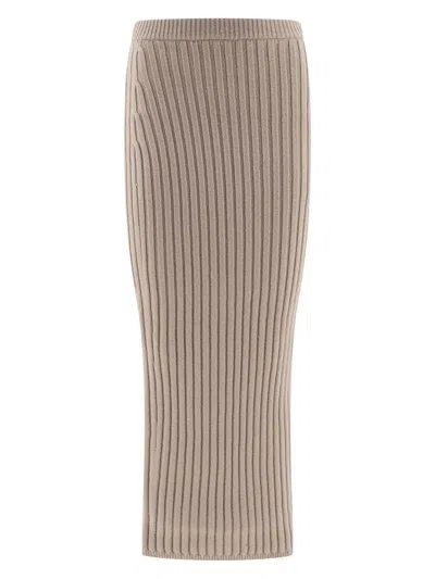 Max Mara's wool and cashmere knit skirt is the versatile and luxurious garment every woman should have in her wardrobe. Made with care and attention to detail, it provides exceptional comfort and style. This eye-catching style is perfect for those seeking a slim fit without sacrificing the softness of fine materials. An ideal choice for a sophisticated and refined look. || - Long skirt above the ankles in wool and cashmere knit - Fitted fit model - Wide ribbed knit that highlights the silhouette - Finished with an elasticized waistband - Ribbed edges - Slim fit || For a flawless look, pair this skirt with a silk blouse and structured blazer. Complete your outfit with stiletto-heeled leather ankle boots and a medium-sized shoulder bag. For a casual touch, opt for an oversized sweater and white sneakers.. Colour. : Beige. Composition. : 65% wool 28% cashmere 6% polyamide 1% elastane. Country Of Manufacture. : Italy. Dimension. : Solid colour. Extra Description. : Slim fit;Pencil. MPN. : 2421306033600SETA002. .