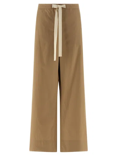'SmmArgento' cotton poplin pants, wide and straight leg, back elastic with drawstring at the waist, zip hook and front button closure, pockets.SpecificationValueBrandMAX MARA 'SComposition100% cottonMade InRomaniaSize & Fittrue to size fitColorBeigeGenderWomenSeasonSpring Summer 2026