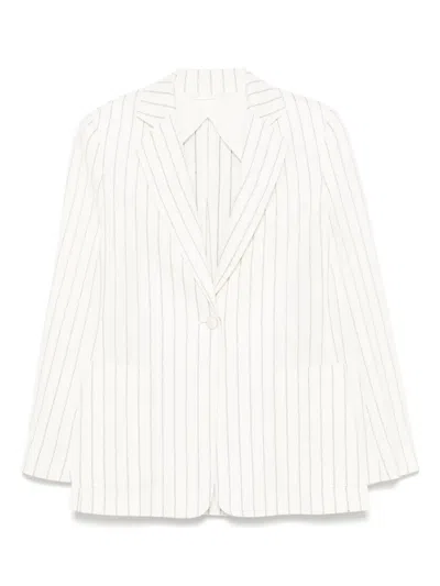 MAX MARA Striped Pattern Blazer Notched Lapels In White