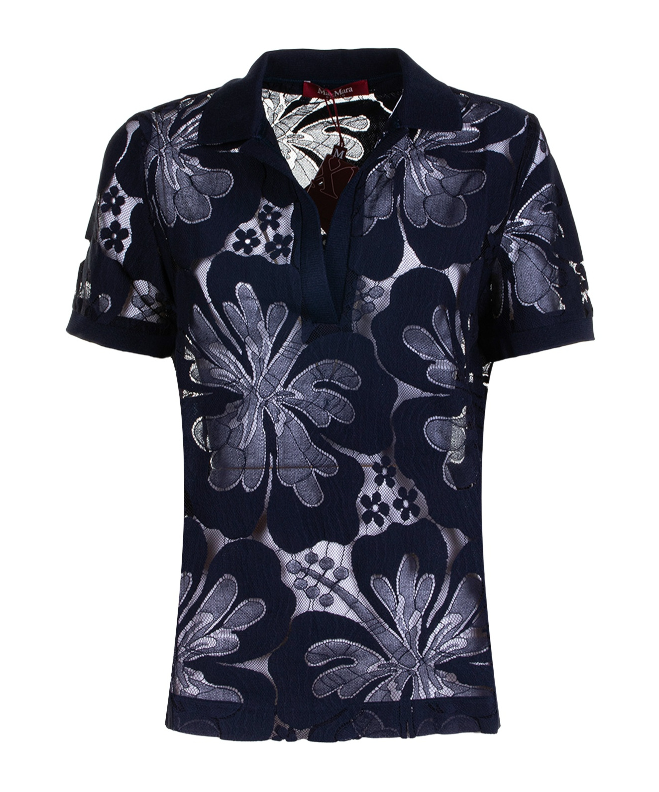 MAX MARA Studio Lace T-shirt With Floral Design In Blue