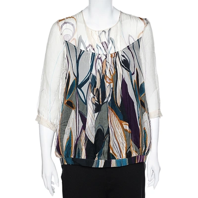 How beautiful is this top from the House of Max Mara Studio It is made from multicolored printed silk, which gives it a finesse look. Wear this top with contrasting black pants and look lovely