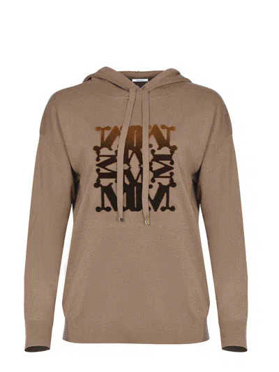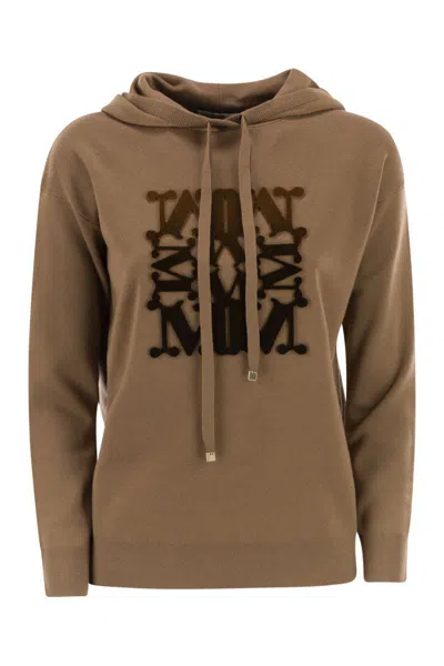 Sweatshirt with drawstring hood, made of lightweight pure wool interlock yarn. Special Edition model, personalised with MaxMaraGram jacquard pattern and Max Mara logo on the front. Finished with long sleeves, dropped shoulder and ribbed edges. - Hood - Logo on front - Dropped shoulder DESIGNER ID: 2521366222600 013
