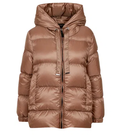 - Iridescent canvas fabric - Drip-proof - Horizontally stitched pattern - Drawstring hood with metal finials - Long sleeves with elastic cuffs and logo patch at wrist - Hip welt pockets - Goose down padding - Straight hem - Regular fit