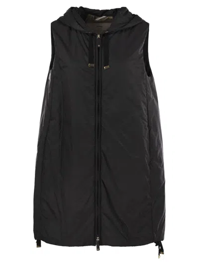 Drip-proof canvas midi waistcoat with hood and drawstring hem. The model features Cameluxe padding. - Wide line - Front zip and double-slider leather closure - Hip pockets DESIGNER ID: 2529296034600 009
