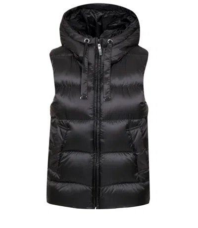 - Technical canvas fabric - Drip-proof - Horizontal quilted pattern - Drawstring hood with metal finials - Sleeveless - Zipper closure with leather slider with Monogram - Applied logo patch on the side at the armholes - Welt pockets on hips - Goose down padding - Straight hem - Regular fit