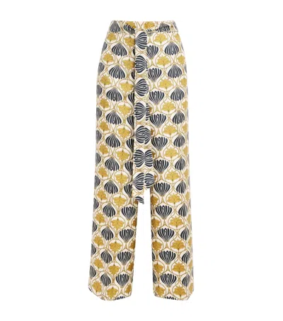 Cropped Silk Trousers Showcase A Stunning All-Over Floral Print. The Straight Leg Design Includes An Elastic Waistband For Added Comfort, Along With A Zip And Hook Closure. A Removable Knotted Belt Highlights The Waist, And Side Pockets Provide Practicality, Making These Trousers A Stylish And Functional Choice.Specifications:- Material: Silk- Design: Cropped, Straight Leg- Waistband: Elastic- Closure: Zip And Hook- Belt: Removable Knotted- Pockets: Side Pockets