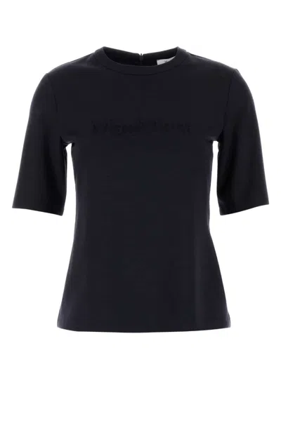 This wool t-shirt is the epitome of understated elegance, crafted for those who value both style and comfort. With its rich navy blue hue, it offers a versatile staple that seamlessly blends into any wardrobe. Experience the natural breathability of 100% wool, perfect for any season. Navy blue color Crew neck design Short sleeves for casual wear Embossed logo on the front for a subtle statement | Max Mara Women's Luxurious 100% Wool T-Shirt in Blue | Size XS | 11941048600