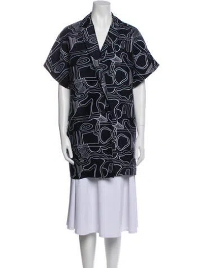 Max Mara Virgin Wool Jacket Blue Printed Embroidered Accent & Pointed Collar Slit Pockets & Button Closure Fit: Jackets by Max Mara typically fit true to size. | Max Mara Virgin Wool Printed Jacket in Blue, Women's S