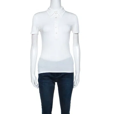 This Max Mara T shirt speaks style through its simple design Made from cotton elastane blend it is fashioned with short sleeves a simple collar and front buttons. You may style this comfortable T shirt with bottoms of your choice.