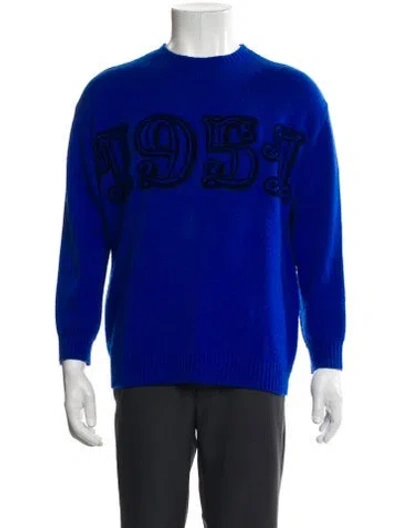 Max Mara Wool Pullover Blue Graphic Print Long Sleeve with Crew Neck Fit: Sweaters by Max Mara typically fit true to size. | Max Mara Wool Graphic Print Pullover in Blue, Men's XS