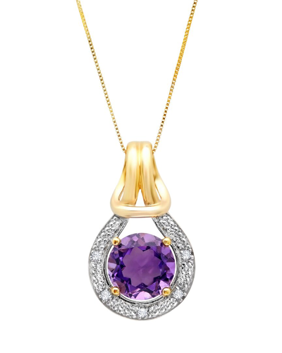 MAX + STONE Maxcolor 10k 1.75 Ct. Tw. Diamond & Amethyst Pendant Necklace In Gold