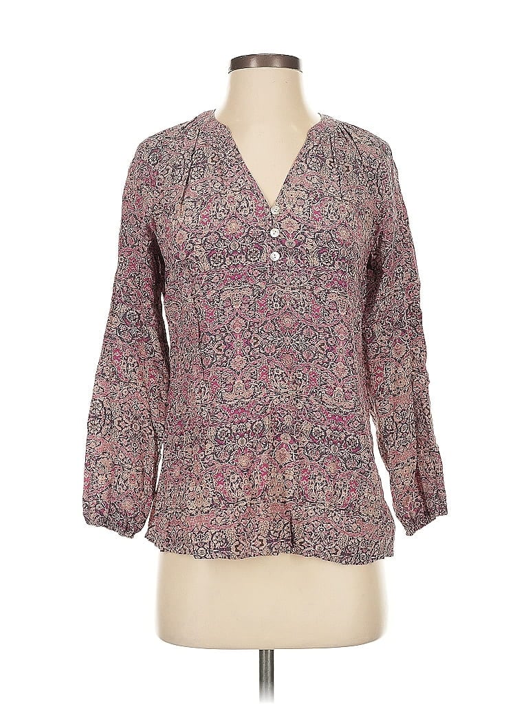 Pre-owned 3/4 Sleeve Silk Top Purple V Neck Tops