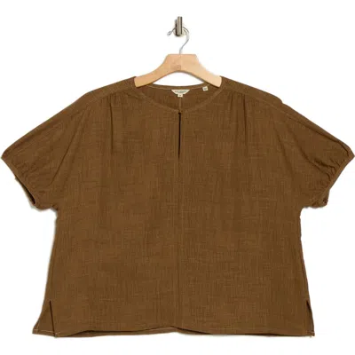 MAX STUDIO Bubble Short Sleeve Top In Brown