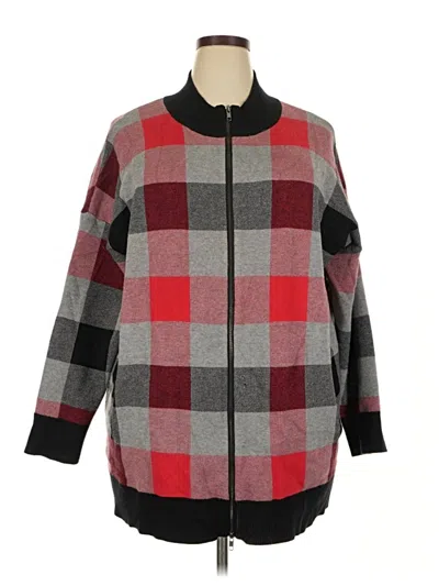 Max Studio Cardigan, Size: 2X. Item Details: Red, Plaid Pattern, Collared Neckline, Long Sleeve, Flannel, Women's Sweaters & Sweatshirts, Rayon/Polyester/Nylon