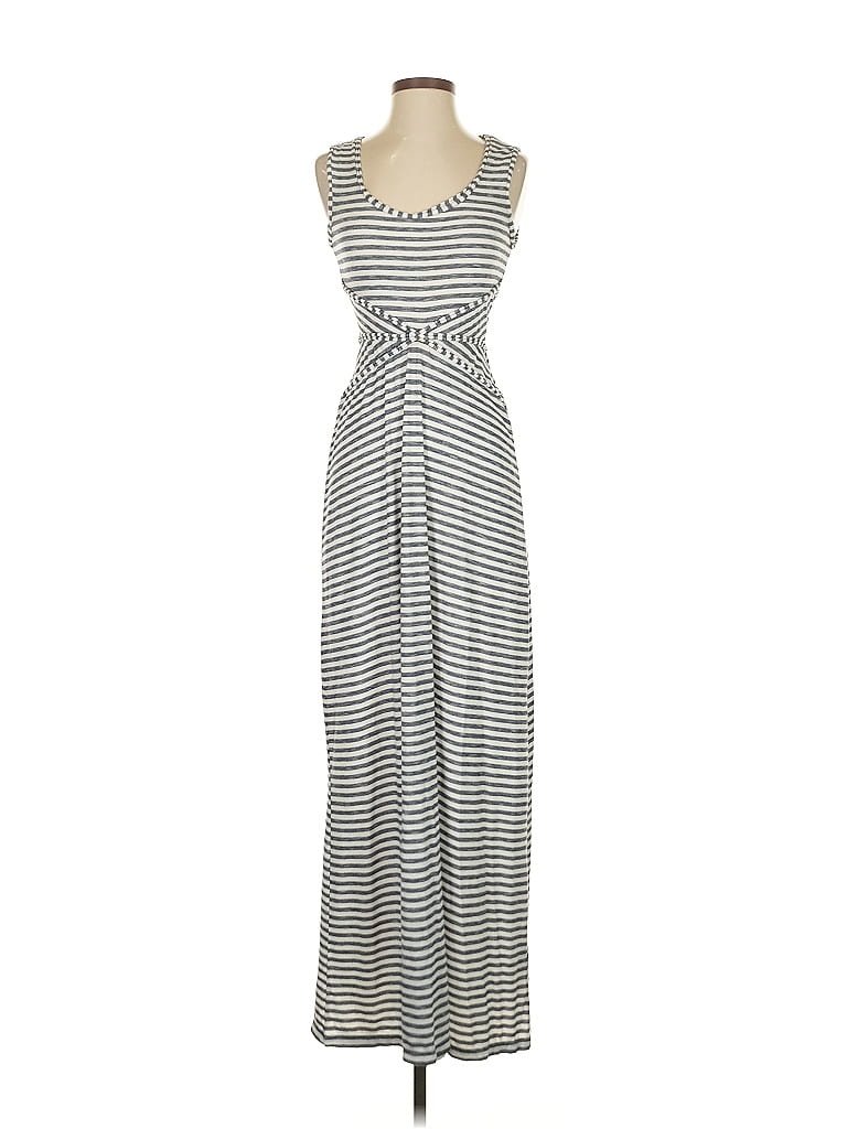 Max Studio Casual Dress, Size: X-Small. Item Details: Gray, Stripes Pattern, Maxi, Scoop Neck, Long Length, Sleeveless, Women's Dresses