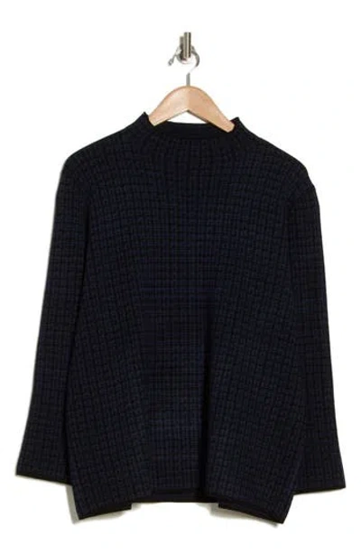 MAX STUDIO Check Mock Neck Sweater In Black/sapphire